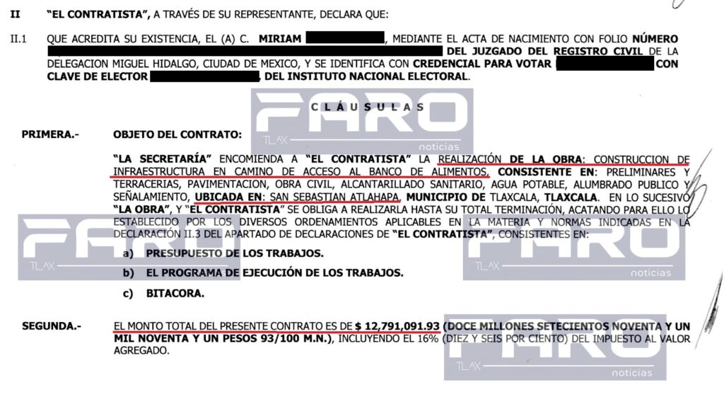 Llama la atención que esa obra fue adjudicada a esa mujer, pero a través de la empresa Miralex con domicilio en el fraccionamiento Real del Valle, ubicado en el municipio de Apizaco.
